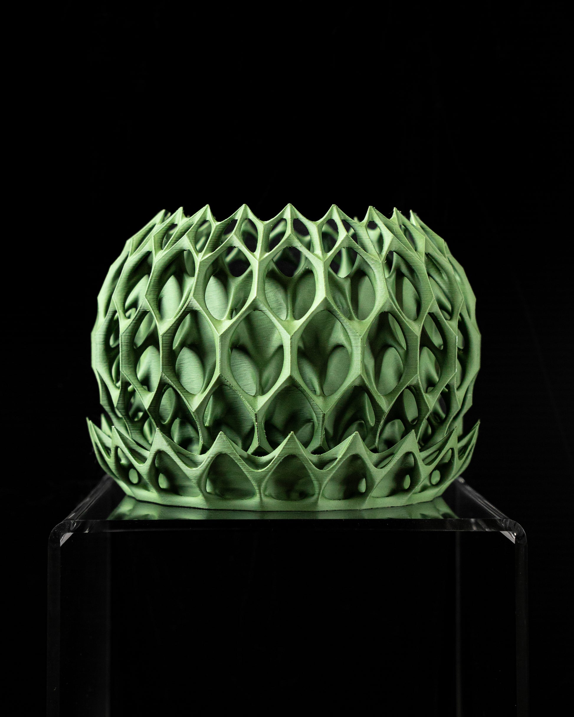 Its geometric form and matte finish make it as much an object as a vessel, designed to sit comfortably on desks, shelves, and sideboards.